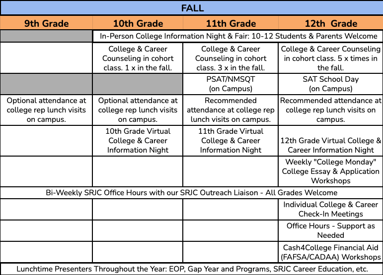 Credo High School provides students with a comprehensive and supportive college counseling program. Our college counselor, Ms. Wuerthner, hosts information sessions several times per year that are meant to provide relevant information for each grade level. 9th and 10th grade students and families learn that grades and disciplinary issues are always important, but are encouraged to spend their time enjoying high school, getting involved in extracurricular activities, rather than worrying about college. In most cases, students can leave the stress of college planning to junior year, when research and planning kick into high gear.